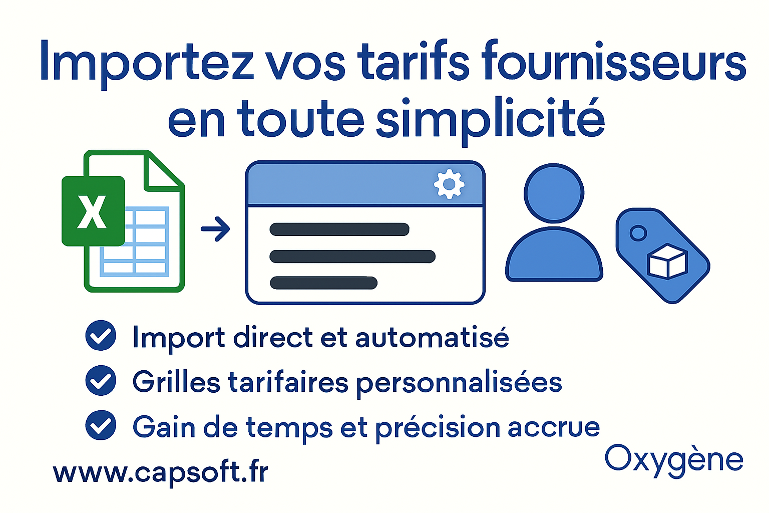 Avec Oxygène et son composant Import Tarif Fournisseur Excel, pilotez vos achats en toute sérénité et garantissez une mise à jour fluide et sans erreurs !