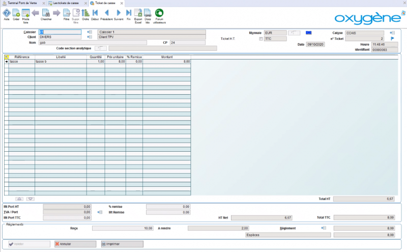 Les tickets sont saisis en TTC mais peuvent également être réalisés en HT