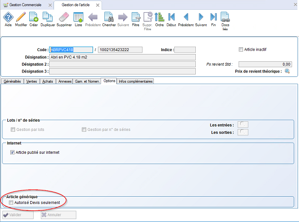 Composant métier additionnel Oxygène, les références articles virtuels, permettent la création rapide de nouveaux articles autorisant leur saisie uniquement sur les devis. Dans un second temps, les références et informations définitives de ces articles pourront être complétées, afin qu'ils puissent rentrer dans le cycle traditionnel de vente de la gestion commerciale et/ou production de la GPAO Oxygène.